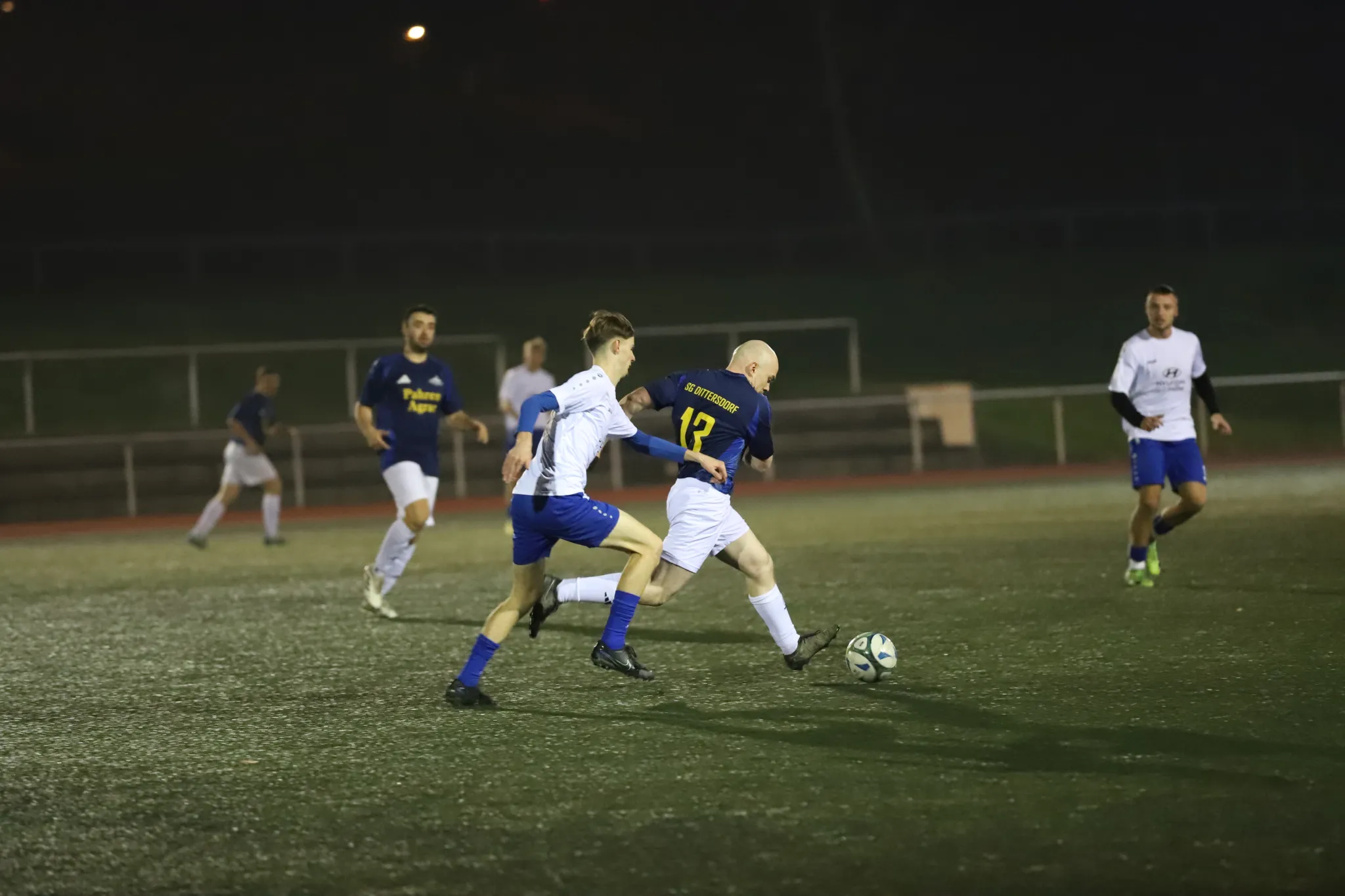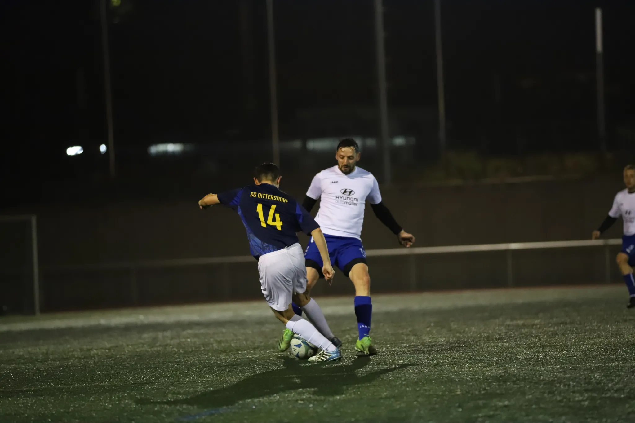 Mit einer über das komplette Spiel starken defensiven Arbeitsleistung erarbeiteten sich die Dittersdorfer nach der Pause gute Chancen, ob Florian Aschenbrenners Ball knapp am Tor vorbei oder den Heber von Christian Vogel – beide fanden den Weg leider nicht ins Tor. Doch dann kam die 52. Minute: Altmeister Alex Feustel bekam den Ball 20 Meter vor dem Tor und legte ihn perfekt in den Lauf von Patrick Enterlein. Mit einem schönen Schlenzer durfte er sich erstmals in die Torstatistik eintragen und wird vermutlich noch lange davon träumen. Pößneck versuchte viel, blieb aber immer wieder hängen oder Max Gruner im Tor parierte hervorragend. Eine weitere Chance gab es noch zu verteidigen: Tom Burkhardt foulte seinen Gegenspieler 16 Meter zentral vor dem Tor, doch der Ball konnte ebenfalls verteidigt werden. Den Schlusspunkt setzte unser Laufwunder Lorenz Berger: Nach Vorarbeit von unserem Aschi sprintete Lorenz 40 Meter durchs Zentrum, blieb entschlossen vor Verteidigern und dem Torwart und erzielte das umjubelte 3:1.